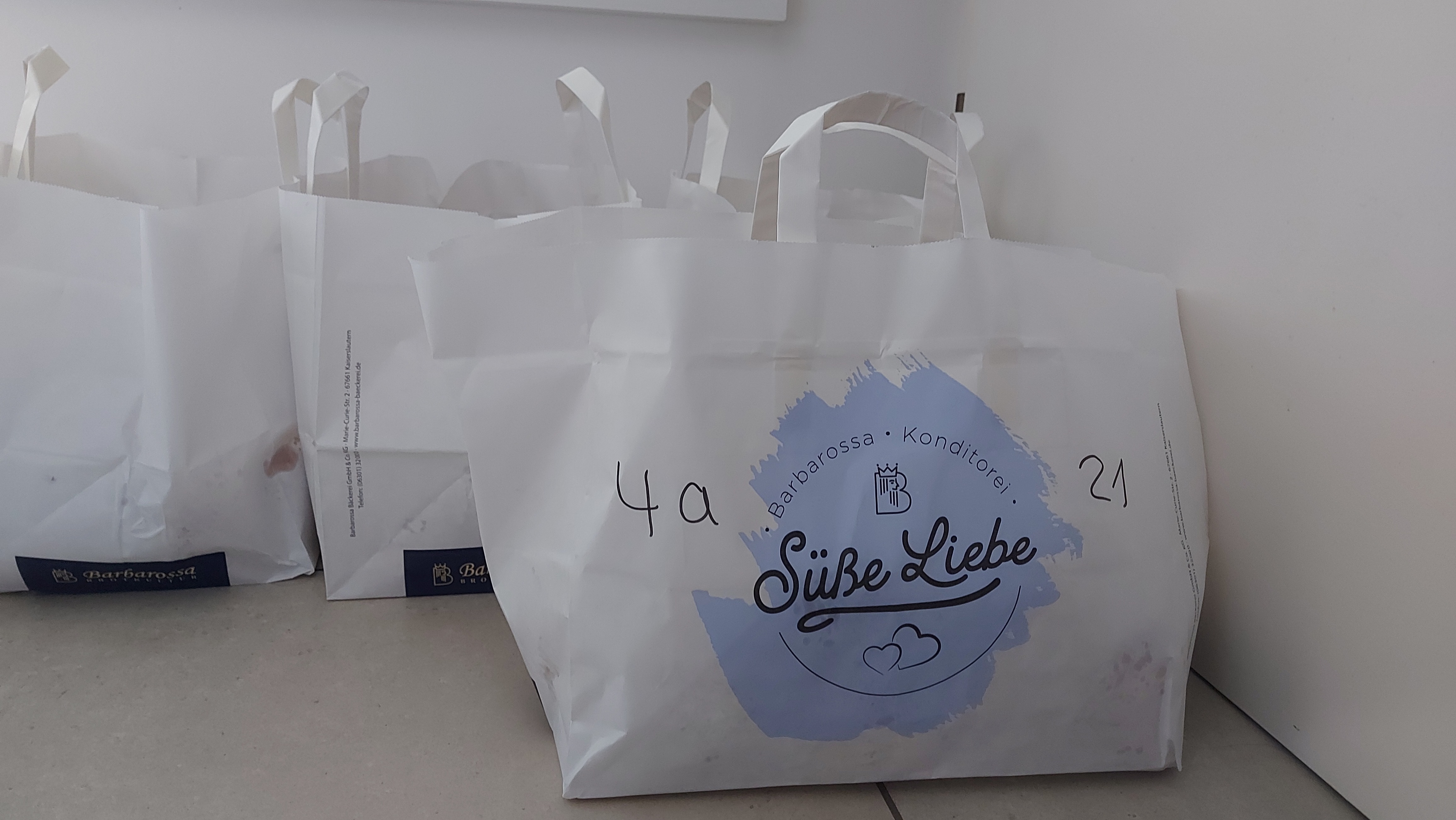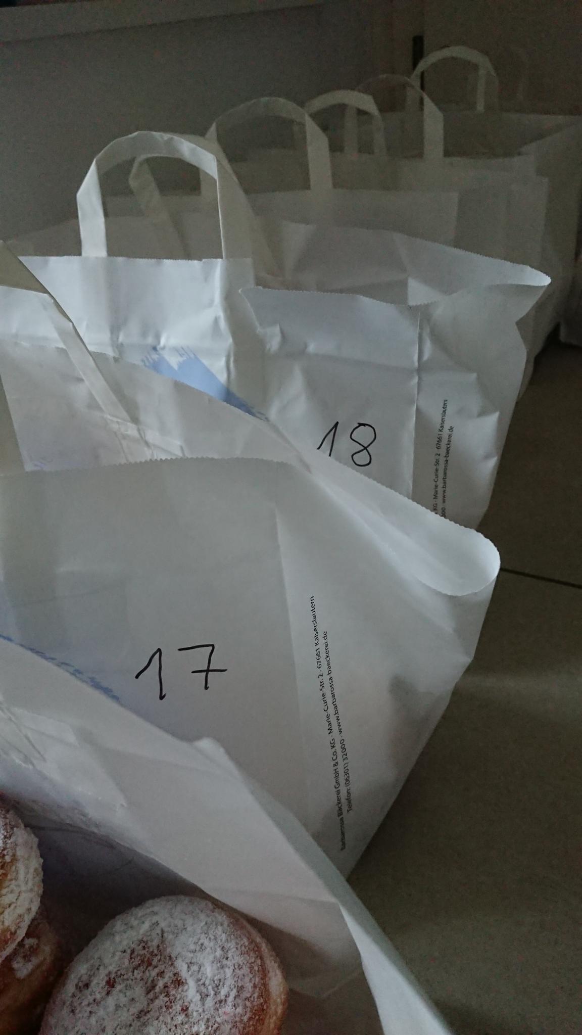 Vielen Dank der Barbarossa Bäckerei in Bad Dürkheim! Die Berliner wurden hier schon je Klasse gerichtet und uns mit einem großzügigem Rabatt übergeben.
