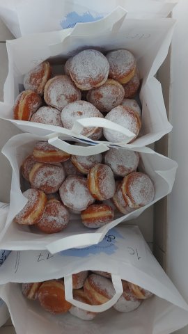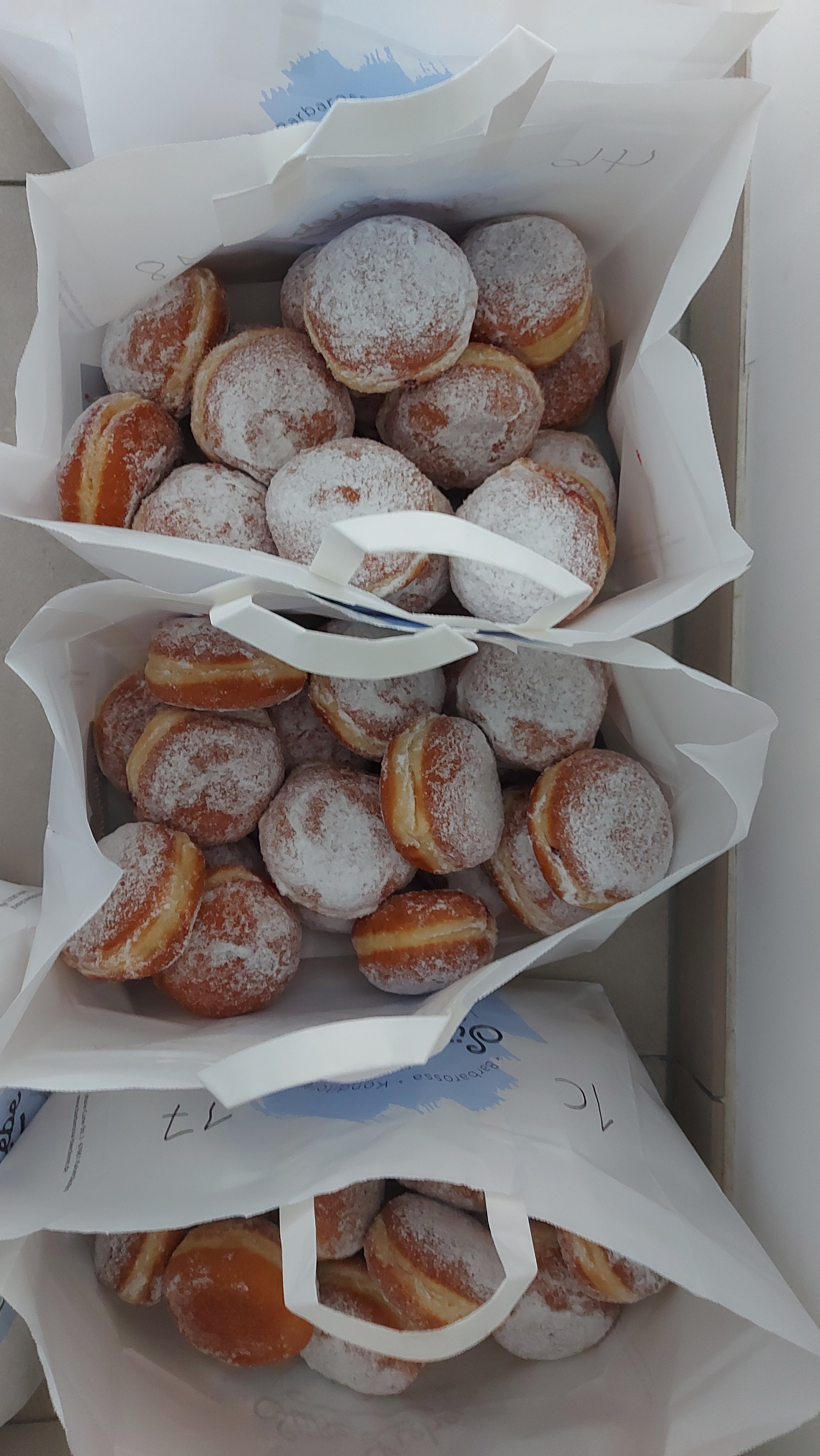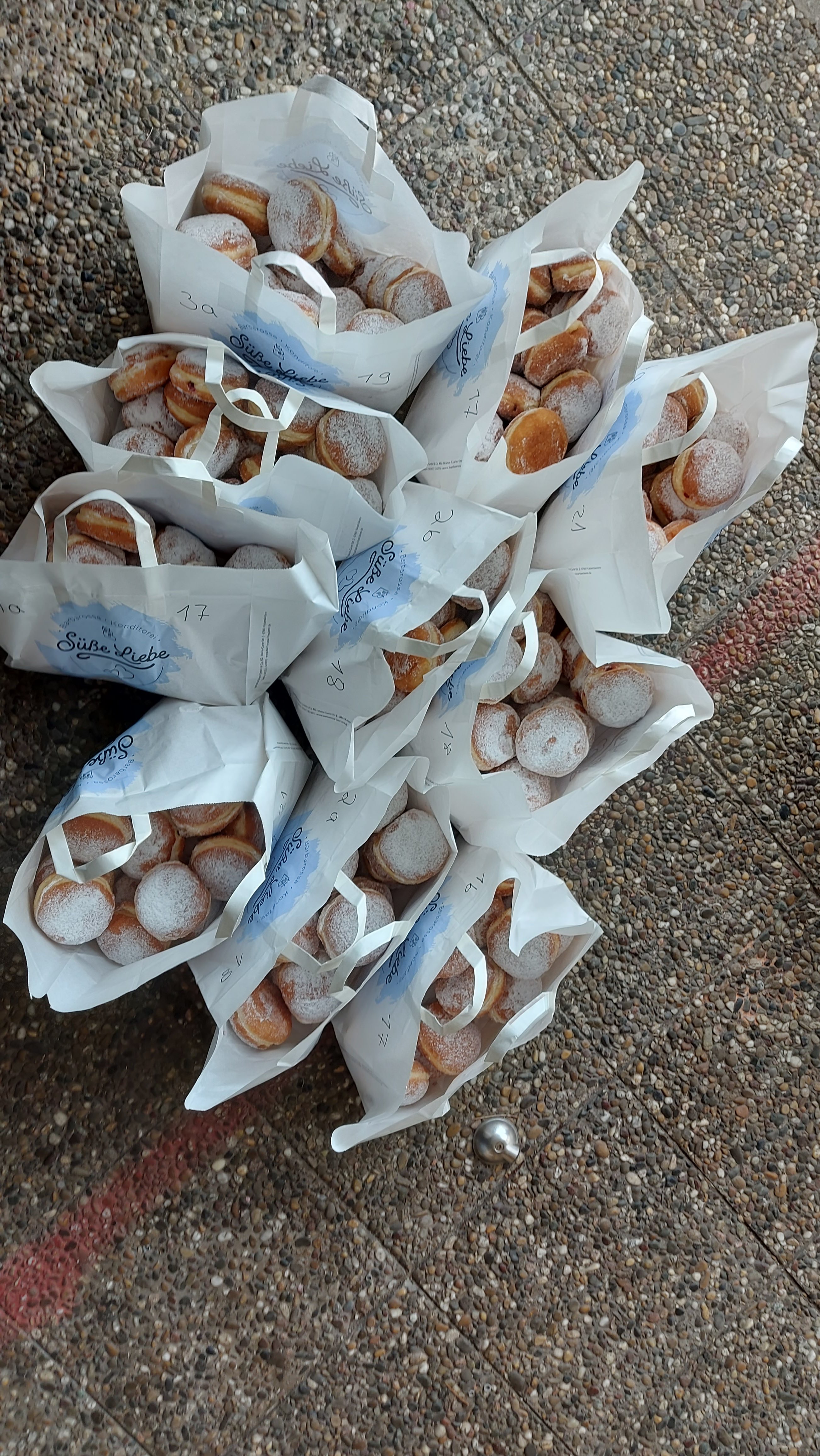 Vielen Dank der Barbarossa Bäckerei in Bad Dürkheim! Die Berliner wurden hier schon je Klasse gerichtet und uns mit einem großzügigem Rabatt übergeben.